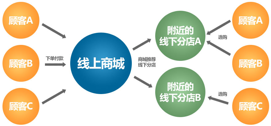 文彩婦幼用品有限公司主營婦幼用品,線下有多家連鎖店,傳統(tǒng)母嬰用品企業(yè)導(dǎo)入O2O是未來的趨勢,文采借助O2O解決方案,搭建了五網(wǎng)合一商城(PC商城、微信商城、易信商城、手機商城、APP商城),實現(xiàn)了“店商+電商”的新型O2O購物模式。其中,“線上消費、線下提貨”是文彩O2O解決方案中的重頭戲。拿微信商城來說,顧客在文彩微信商城上購物,到了支付時,顧客可選擇在線支付或線下提貨,若是選擇了線下提貨,系統(tǒng)會自動獲取消費者的地理位置,在 “所轄地區(qū)”選擇默認分店待訪客確認或自行選擇其他子站。